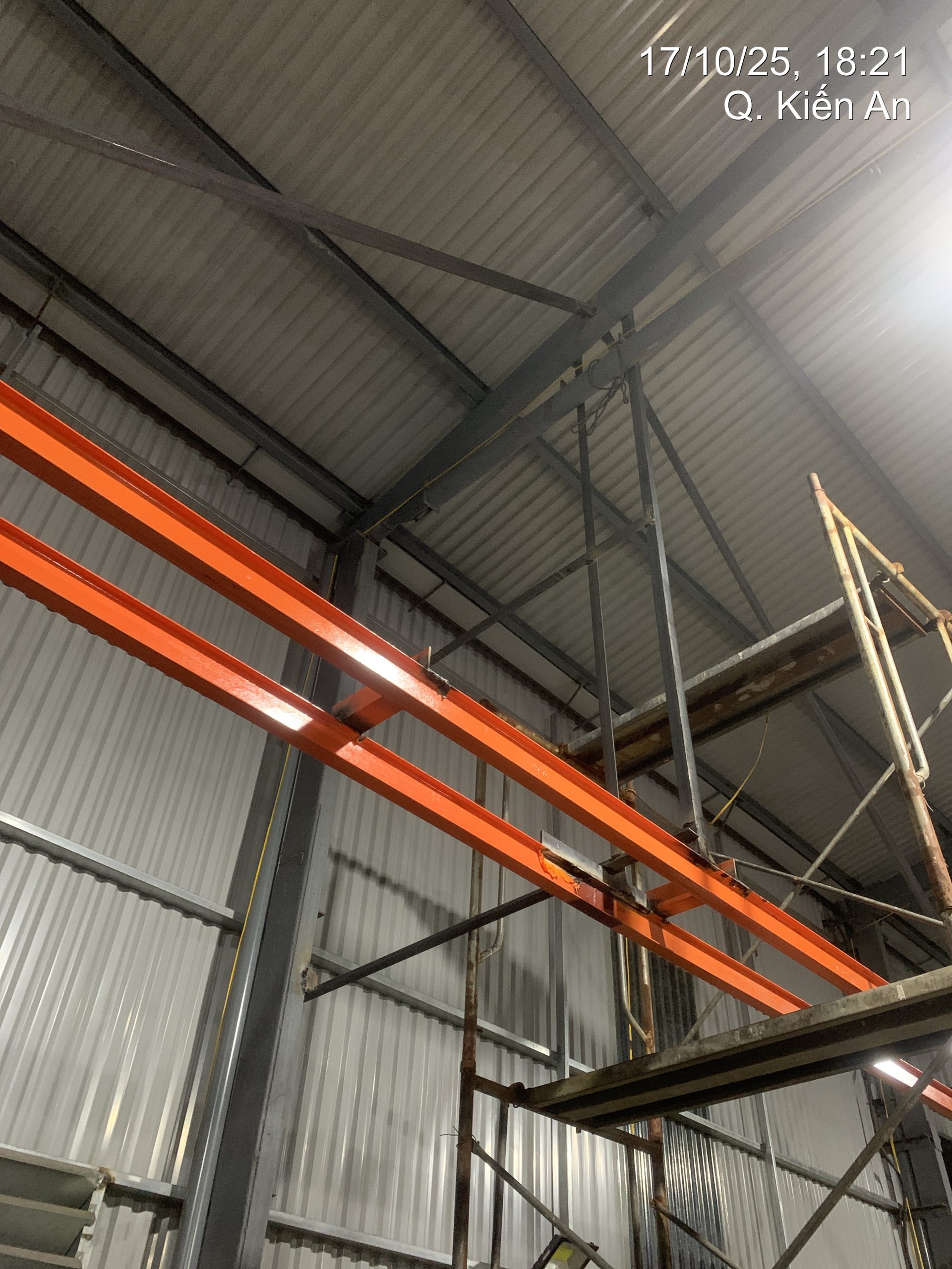 TC_00765 Published 15 Tháng 1, 2026 at 1920 × 2560 in Hệ Thống Buồng Sơn Tĩnh Điện Công Nghiệp: Quy Trình Gia Công & Lắp Đặt Chuẩn Kỹ Thuật Lắp đặt hệ thống dầm I chịu lực (màu cam) cho dây chuyền băng tải xích. ← Previous Next →